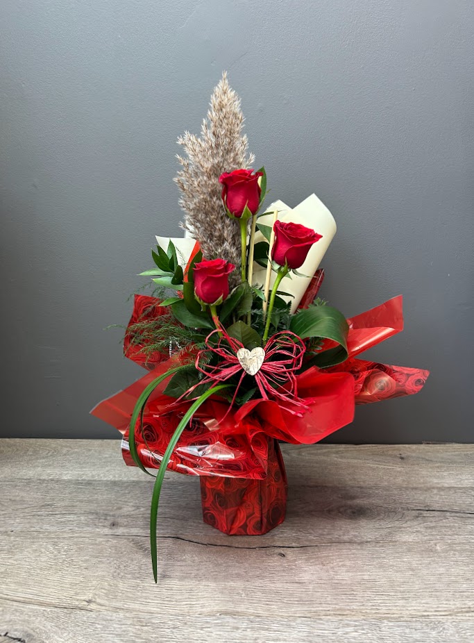 Parce que certaines histoires d’amour traversent le temps, notre bouquet vedette “Roméo & Juliette” incarne la passion et la tendresse en toute simplicité. 3 magnifiques roses rouges, symbole éternel de l’amour vrai, disposées dans un bouquet d’eau (pas besoin de vase!).