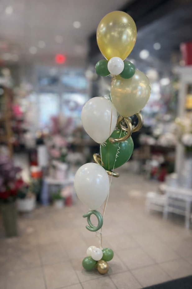 Bouquet 5 Ballons – Thème et Couleurs au Choix Offrez un bouquet de ballons personnalisé, adapté à toutes les occasions. Que ce soit pour une fête d’anniversaire, une graduation, un prompt rétablissement ou toute autre célébration, nous créons votre arrangement selon le thème et les couleurs de votre choix.