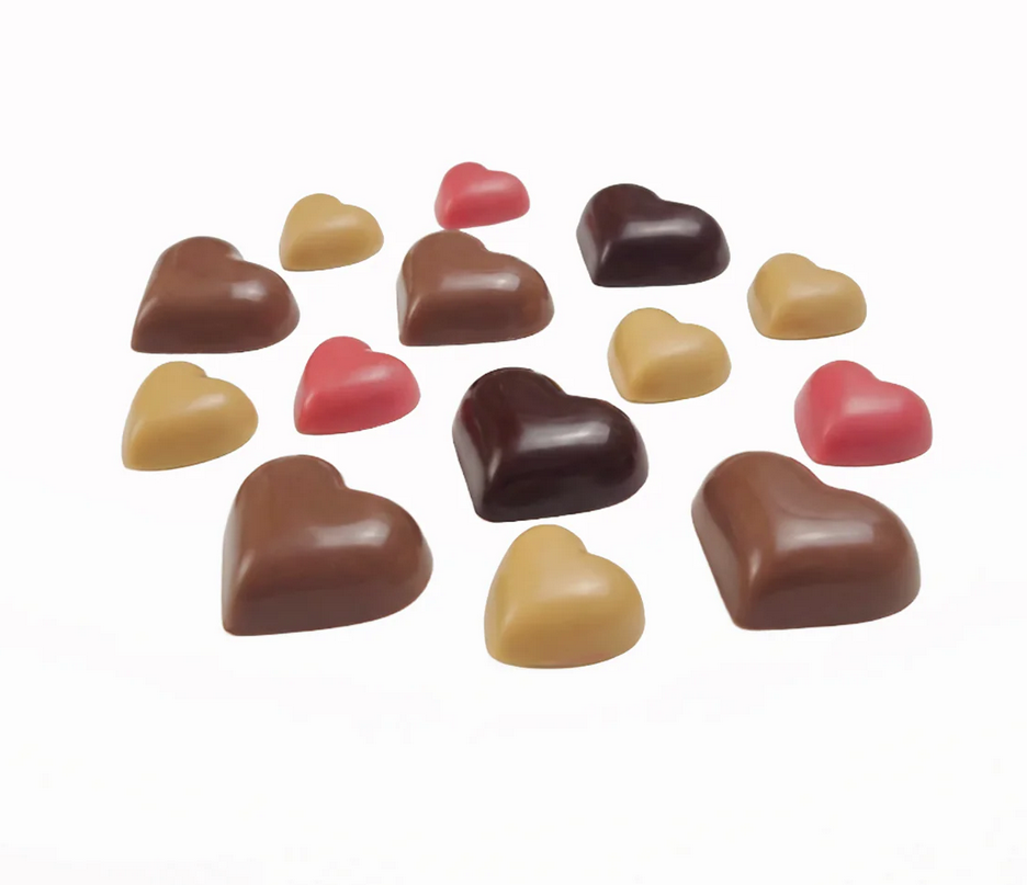 Offrez une véritable avalanche de gourmandise avec cette boîte remplie de 22 petits cœurs en chocolat, aux saveurs et couleurs irrésistibles. Chocolat au lait, chocolat noir, chocolat blond et chocolat à la fraise se rencontrent pour créer une explosion de goûts et de plaisir visuel.