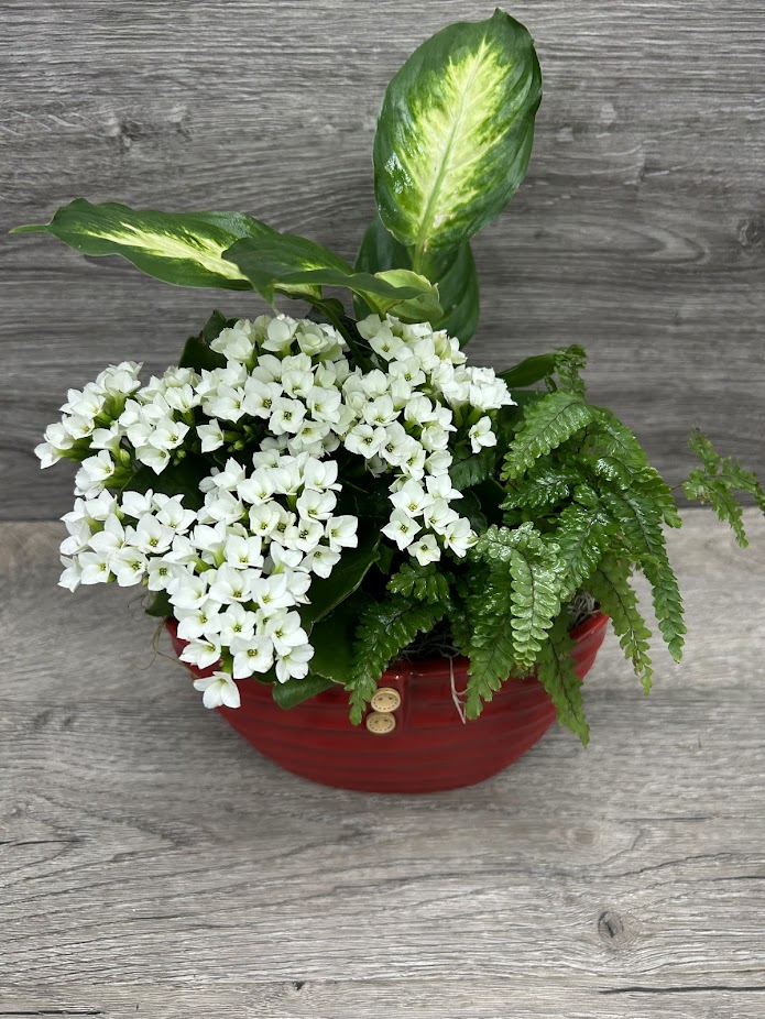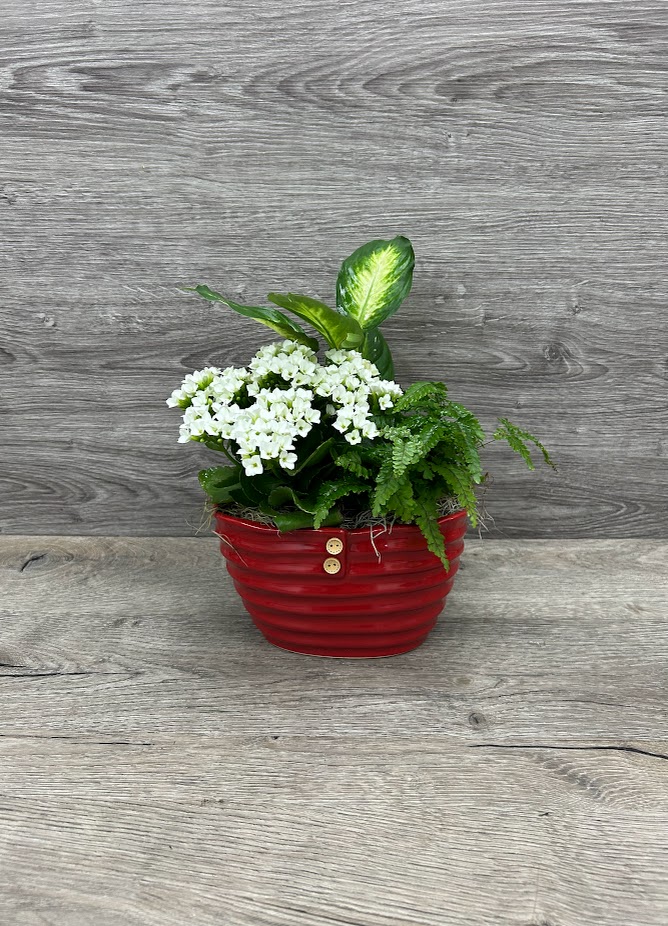 Ce jardin réunit des plantes faciles d’entretien, dont un kalanchoé blanc fleuri, une fougère délicate et un feuillage décoratif, créant un ensemble harmonieux, lumineux et durable. Parfait pour offrir en cadeau ou pour ajouter une ambiance naturelle à la maison, ce jardin se maintient longtemps après Noël grâce à ses plantes robustes qui continueront de grandir et d’embellir votre espace.